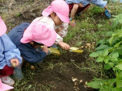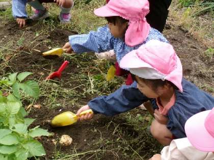 ジャガイモ掘り 公開日 2025/05/26 更新日 2025/05/26 園児のようす 園内でジャガイモ掘りをしました。 葉っぱをもって、「よいしょ!」と引っ張ったり、土の中のジャガイモを探したり…。 探しているうちに、ジャガイモではなく、ダンゴムシ探しを始める子どもたちもいて、とても可愛い自然な姿の子どもたちでした。 いいね(0)