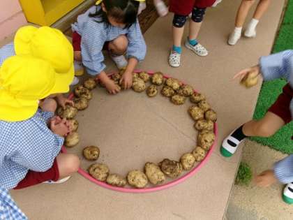 ジャガイモを数える 公開日 2025/05/26 更新日 2025/05/26 園児のようす さぁ、採ったジャガイモをどうするのか。 5歳児はみんなで相談です。 子ども「数を数える!」 先生 「どうやって?」 子ども「数え方をグーグルに聞いたら?」 先生 「・・・・。」 結局、大きさで分けてから、数を数えることにしたそうです。 グーグルに聞くことも一つの手段ですが、友達同士考えを出し合い、どの方法がいいのか、みんなで相談して決めていました。 いいね(0)