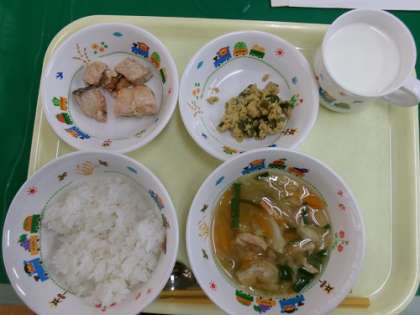 ・鮭のみそ焼きもとても美味しいです!五目汁も野菜がたくさんです!