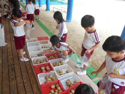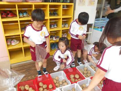 子どもたちは「どれにしようかな?」「これめっちゃでっかい‼」「これいいな♪」と持って帰るジャガイモをじっくり選んでいました。
