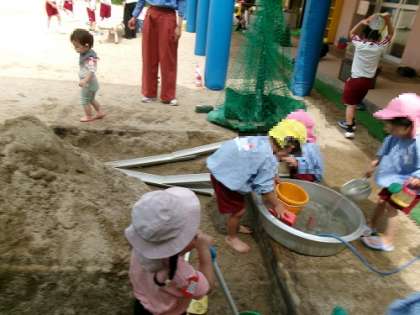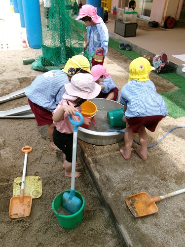 すくすくくらぶの子どもたちも一緒に泥遊びや色水遊びなど楽しみました!