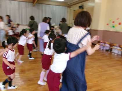 お家の方と一緒にふれあいダンスをする機会もなかなかないので、幼稚園でこのような楽しい時間をとるのも、とても素敵ですね!