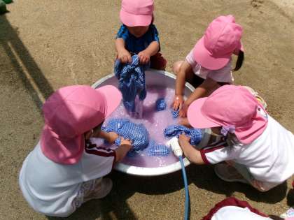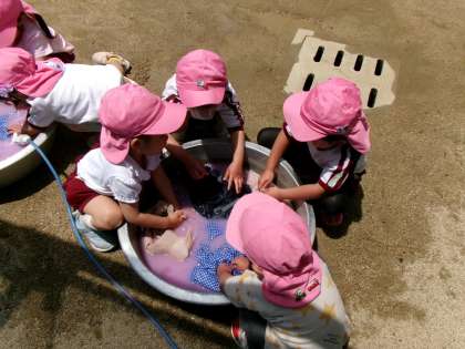 「えのぐが取れてきたよ」「でも、水がピンクになってきた」と