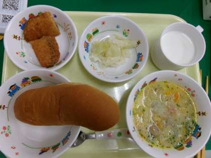 本日の給食(6月10日) 公開日 2025/06/10 更新日 2025/06/10 今日の給食 〇サーモンフライ 〇豆乳スープ 〇キャベツのゆずドレッシング 〇パン でした! サーモンフライがとても美味しいと思いましたし、豆乳スープもまろやかで、美味しいです! ごちそうさまでした!! いいね(0)