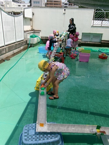 ウォーターパーク 公開日 2025/06/19 更新日 2025/06/19 園児のようす ボールのスライダーを作って遊んでいます。 角度によって転がるスピードが違ったり、水を流す量で勢いが違ったり、様々なことを感じながら、楽しんでいます。 いいね(0)