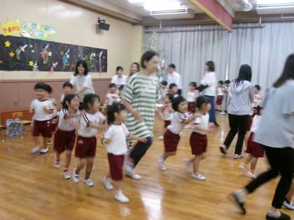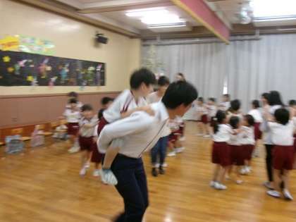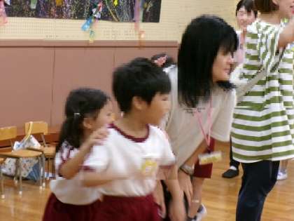 みんなでダンスをしたり、お家の方とのふれあい遊びがあったり、みんなで楽しみます。