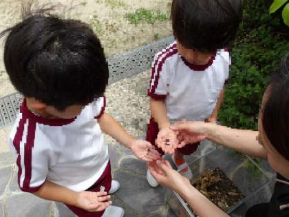 「先生、赤ちゃんダンゴムシが雨に濡れたら大変だから、お天気になったらお庭に戻してあげてね」と約束しました。