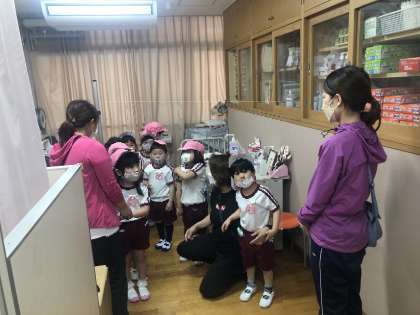 「幼稚園っていろんなお部屋があるんだよ。探検にしゅっぱ〜つ!