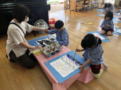 my こいのぼり (5歳児) 公開日 2022/04/25 更新日 2022/05/23 園児の様子 園庭にこいのぼりをあげてから、昨年の経験もあってか「こいのぼりをつくりたい!」との声が。「何匹つくる?」「二匹!だって一匹だけじゃ寂しいやん」今日は二匹目のこいのぼりつくり。うろこをパスでえがき、その上に好きな色の絵の具をぬっていくと・・あら、不思議!今乾かしています。出来上がるmyこいのぼりが楽しみですね! いいね(0)