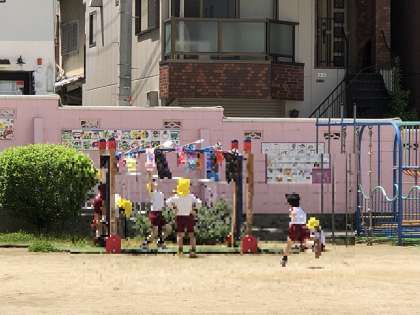 こいのぼりまで・・(5歳児) 公開日 2022/04/28 更新日 2022/05/23 園児の様子 つくったこいのぼりを園庭で元気に泳ぐこいのぼりのように泳がせたいという気持ちがあって、ポールのそばにつけようとしたり、雲梯にのせてぶら下げたりしていました。考えていますね(^^)保育室に入る前にみんなでこいのぼり目指して、よ〜い ドン! いいね(0)
