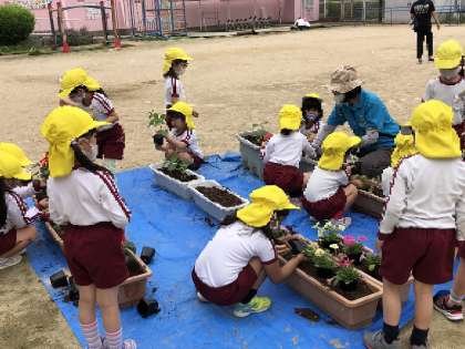 みんなで花や野菜の苗植え(5歳児)