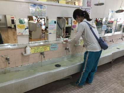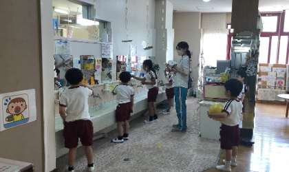 〇番電車〜歯みがきシュッシュッ 公開日 2022/05/20 更新日 2022/05/20 保健室からのお知らせ 感染症拡大防止のため、2階のプレイルームで昼食をとっている5歳児。4人揃ったら「〇番電車〜」といって1階手洗い場に降りてきます。みがき残しがないよう鏡を見ながら、♪はみがきシュッシュッの歌に合わせて取り組んでいます。その様子を時々、4歳児がじっと見ています。歯みがきが終わる度に、消毒しています。 いいね(0)