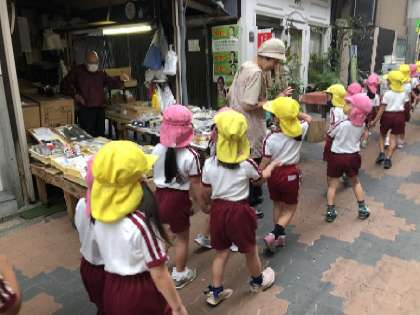 地域にお出かけ 2 公開日 2022/06/07 更新日 2022/06/07 園児の様子 お店がすでに開いているところ、準備しているところ。いろいろでしたね。「ここのお店、入ったことある。〇〇買ったよ」お店の方も「おはよう」と笑顔で手を振ってくださいました。とても温かいです(^^) いいね(0)