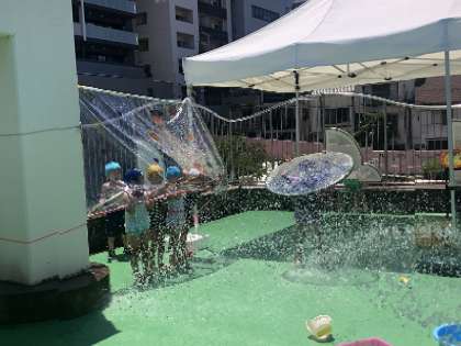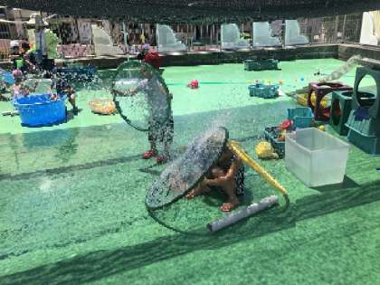 ウォーターパーク満喫(^^)(4歳児) 公開日 2022/06/30 更新日 2022/06/30 園児の様子 透明シートをつけたフープを今日はお風呂に見立ててました。また、新たに子どもたちが絵をかいた大型透明シートを設置すると、そこにも移動して・・ 今日も思う存分水を浴び、最後はゴロンと寝転んで・・ あぁいい気持ち〜温まったね♨ いいね(0)