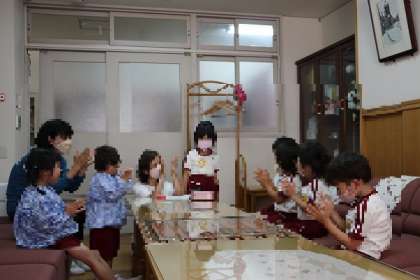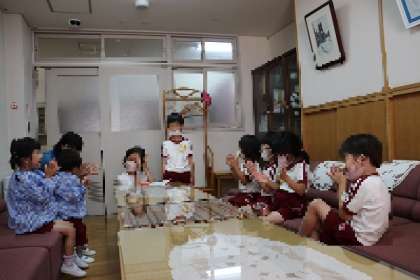 もうすぐ誕生会 公開日 2022/07/01 更新日 2022/07/01 園児の様子 今日は6・7・8月生まれの誕生児が園長室で誕生バッチをいただきました。バッチをつけてもらい、みんなの前で自己紹介。ちょっと恥ずかしかったかな・・7月7日、楽しみにしましょうね〜 いいね(0)