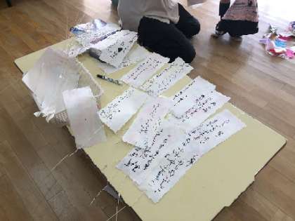 今日、子どもたちがつくった飾りと小笹を持ち帰りました。短冊は2枚。1枚には子どもたちの願いを教師が聞いてかいたり、自分でかいたりしています。あとの1枚はお家で相談して願い事をかくようにしました。台風も去り、7日は夜空で織姫と彦星が出会えるといいですね☆彡