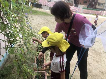 今日も種とれるかな・・ 公開日 2022/08/23 更新日 2022/08/23 園児の様子 今、園庭に出ると、必ずフウセンガズラやアサガオを見に行きます。種ができているかを確かめています。今日も少し見つけられました。 いいね(0)