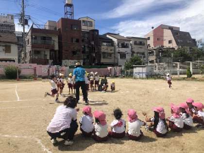 バトンを最後までつながるよう、懸命に走る姿を4歳児が応援しながら見ていました。