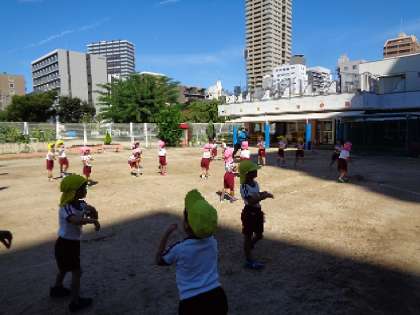 広い園庭で元気に体操! 公開日 2022/09/12 更新日 2022/09/12 園児の様子 朝、広い園庭に出てみんなで♪ウンパパたいそう♪ 今日は朝から日差しが強かったので、休憩をとりながら、かけっこやリレーなどなど楽しみました(^^) いいね(0)