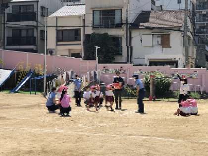 種まきの後、南警察署の方から横断歩道の渡り方について分かりやすく教えていただきました。