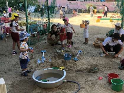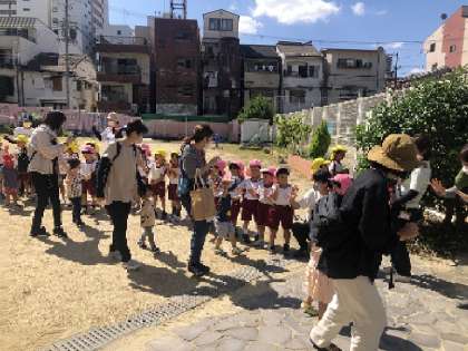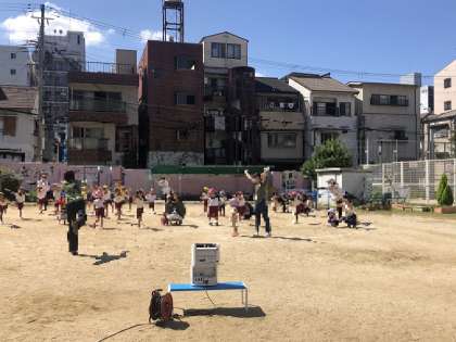 好きな遊びを楽しんだ後、在園児と一緒に、♪ウンパパたいそう♪をしました。