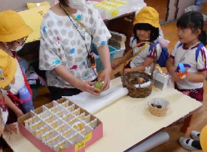 幼稚園でできた可愛いスイカの中は〜(5歳児) 公開日 2022/09/29 更新日 2022/09/29 園児の様子 園で育てて収穫した可愛らしい小ぶりのスイカ。切ってみたら黄色! 「わぁ!黄色」「美味しそうな匂いがする」「食べたいなぁ〜」 ウーン 同感〜 いいね(0)