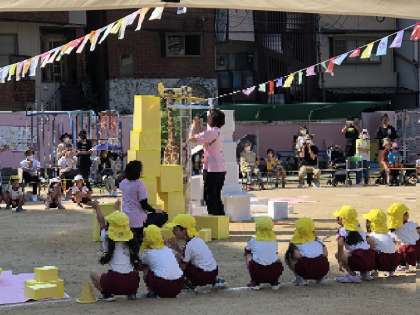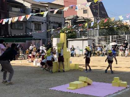 キラキラ運動会2 公開日 2022/10/01 更新日 2022/10/01 園児の様子 5歳児 団体競技 力を合わせて(箱積み競争) 1分間 2回戦 の勝負 短時間の間に箱を積み上げます 途中で崩れないように・・ 今日の勝負は、2回とも黄チームの勝ち❕ いいね(0)