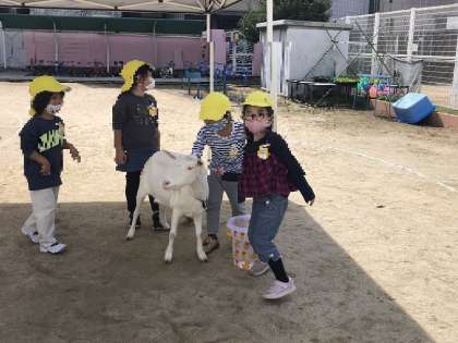 朝、少し野菜を持ってきてくれた子もいて、ヤギやウサギなどにあげました。
