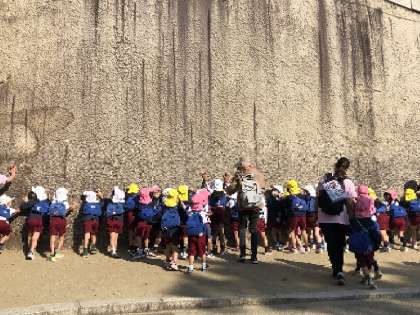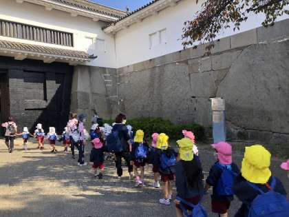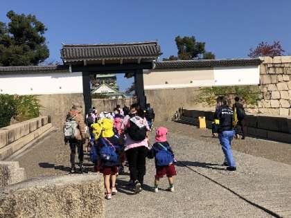 大きな石垣が・・(園外保育2) 公開日 2022/11/08 更新日 2022/11/08 園児の様子 大手門を入ると大きな石垣。そして、桜門をくぐり抜けるときに天守閣が目の前に見えました。そこにも大きな石垣。みんなでぐっと押してみてもびくともしません!昔の人はこんな大きな石をどうやってここまで運んだのでしょう。凄いね。 いいね(0)