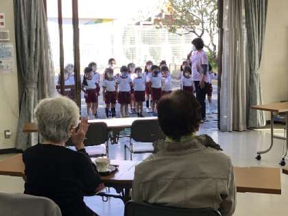 昨日、保護者と未就園児に披露したこともあるのか、今日の披露は少しリラックスしての歌唱だったと思います。地域の方からも温かい拍手をいただき、認めていただいたことで、とても満足気でした。