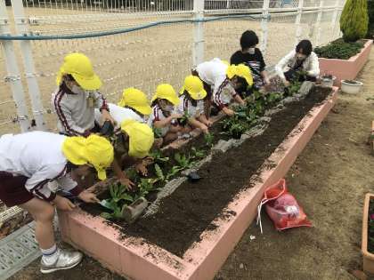 チューリップ、ムスカリ、クロッカスの球根と種花事業で育てていたキンセンカを花壇に植えました。