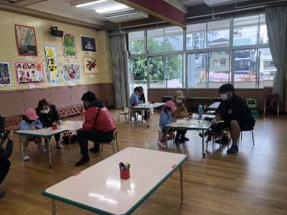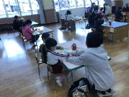 作品を見る時間とふれあい製作の時間とに分かれて取り組んでいただきました。