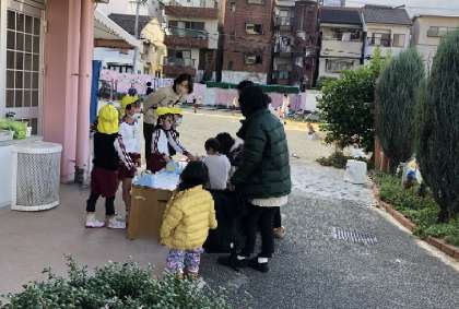 この頃、5歳児が受付の準備から未就園児を迎えるまで積極的に取り組んでいます。