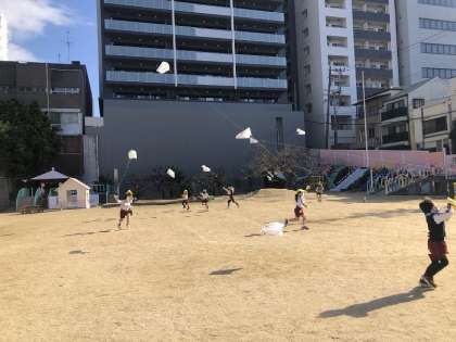 もっと高くあげたい (5歳児) 公開日 2022/12/20 更新日 2022/12/20 園児の様子 5歳児は二日目ということもあり、昨日よりも高くあげたい気持ちがあったのでしょう。糸の長さを昨日より長くしていました。 その分、走る速さや場所も考えないと、友達の凧と絡んでしまいます。 身をかわしながら、走って凧をあげていました。 青空がきれいな時間でもあって、とても気持ちよかったです。 いいね(0)