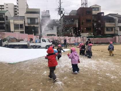 「わぁ!雪だ」早く遊びたくてうずうずしていました。