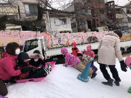 そりすべりを楽しんだり、雪の上に寝転んだり・・