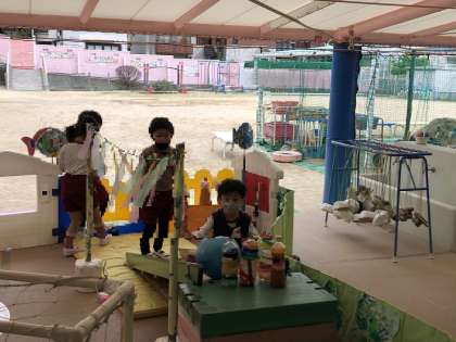 朝、賑やかなテラスを見ると、面白いゲームをしていました。