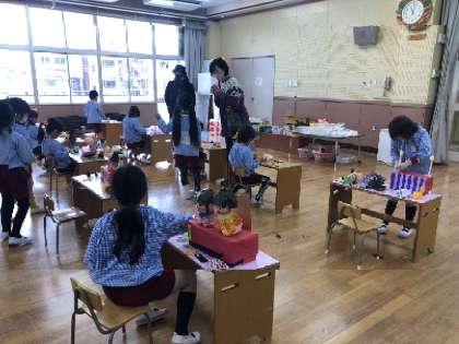 明日は楽しいひなまつり (5歳児) 公開日 2023/03/02 更新日 2023/03/02 園児の様子 コツコツと時間をかけてひな人形をつくっていた5歳児。雪洞も細かい。 明日は今年度最後の誕生会とひなまつり。 楽しみですね。 いいね(0)