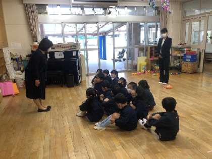 9時40分開式に向けて、4歳児、5歳児とも保育室で心の準備中・・ 【3月16日】