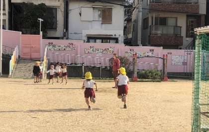午前中から園庭で鬼ごっこをしたり自転車に乗ったり・・