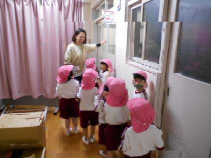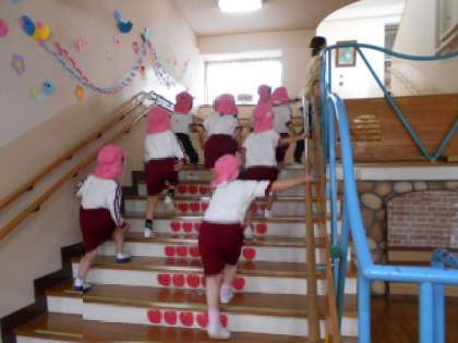担任の先生から「ここは〇〇といって、▲▲のときに入るんだよ」と教えていただきながら、いろいろと巡り、よいしょ、よいしょ、2階のプレイルームへ・・