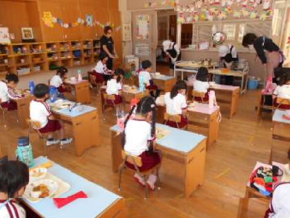 昼食が始まりました! 〜5歳児〜 公開日 2023/04/13 更新日 2023/04/13 園児の様子 今日の献立は「カツカレー」 とても喜んで食べていました。 いろいろな食材を知り、味わいましょうね。 調理員さん、よろしくお願いいたします。 【昼食実行委員会】 いいね(0)