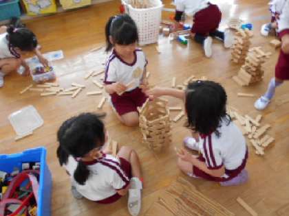 それを見て、「どっちが高くなるかな」と言って、競い合いに。