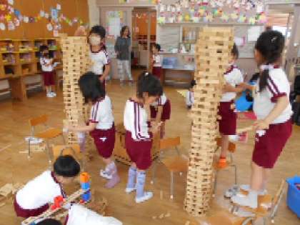 最終、1カ所が崩れてしまい、残ったほうを大事そうに周りを机で囲って降園しました。