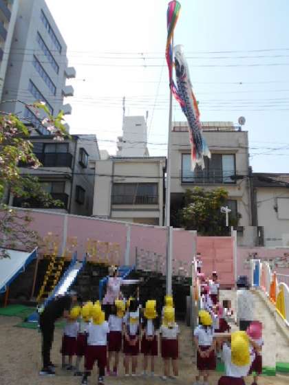 いよいよ今日から園庭にこいのぼりが元気よく泳ぎます!