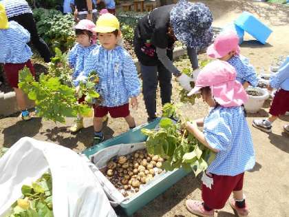 「さぁ 畑に集まってー」「ジャガイモを見つけようね」