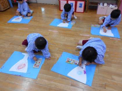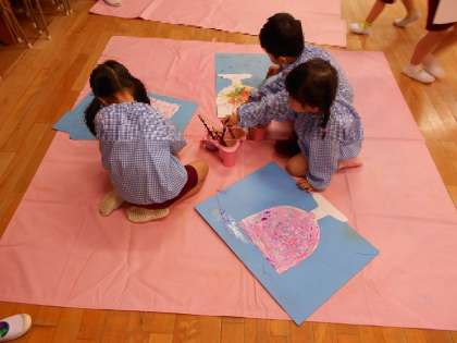 パスが絵の具をはじくので、はじき絵の面白さも感じながら、ジュースをつくりました。