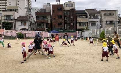 今日もお家の方々も保育に参加し、園庭で体操や固定遊具などで体を動かしたり、一輪車や色水遊びでは子どもたちの姿を優しく認めていました。