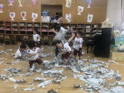 わぁ〜い わぁ〜い (4歳児 新聞紙で遊ぶ1)