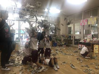 4歳児の保育室から歓声が聞こえてきました。